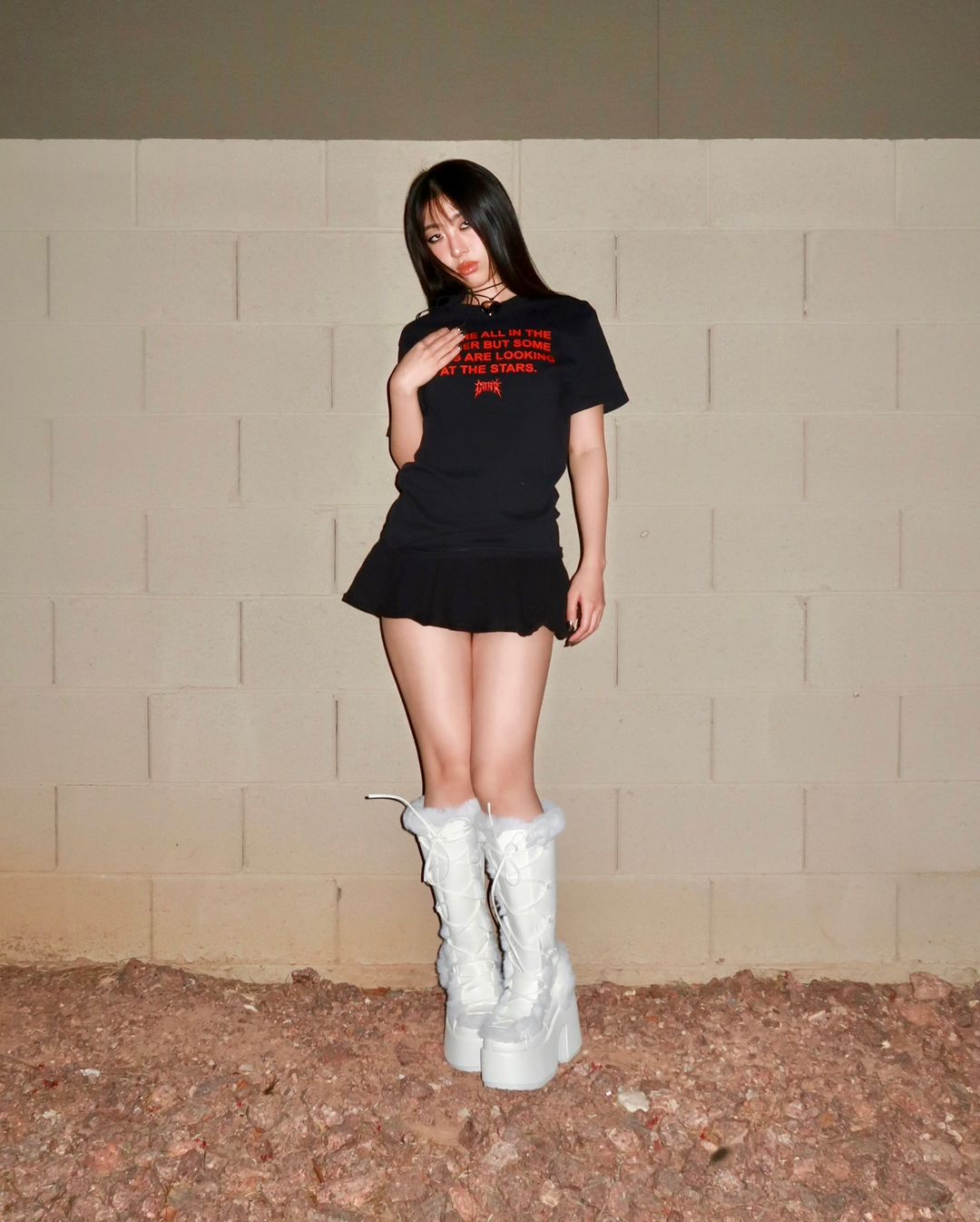 Blood Red "Looking At The Stars" Design Printed On Center Of Chest