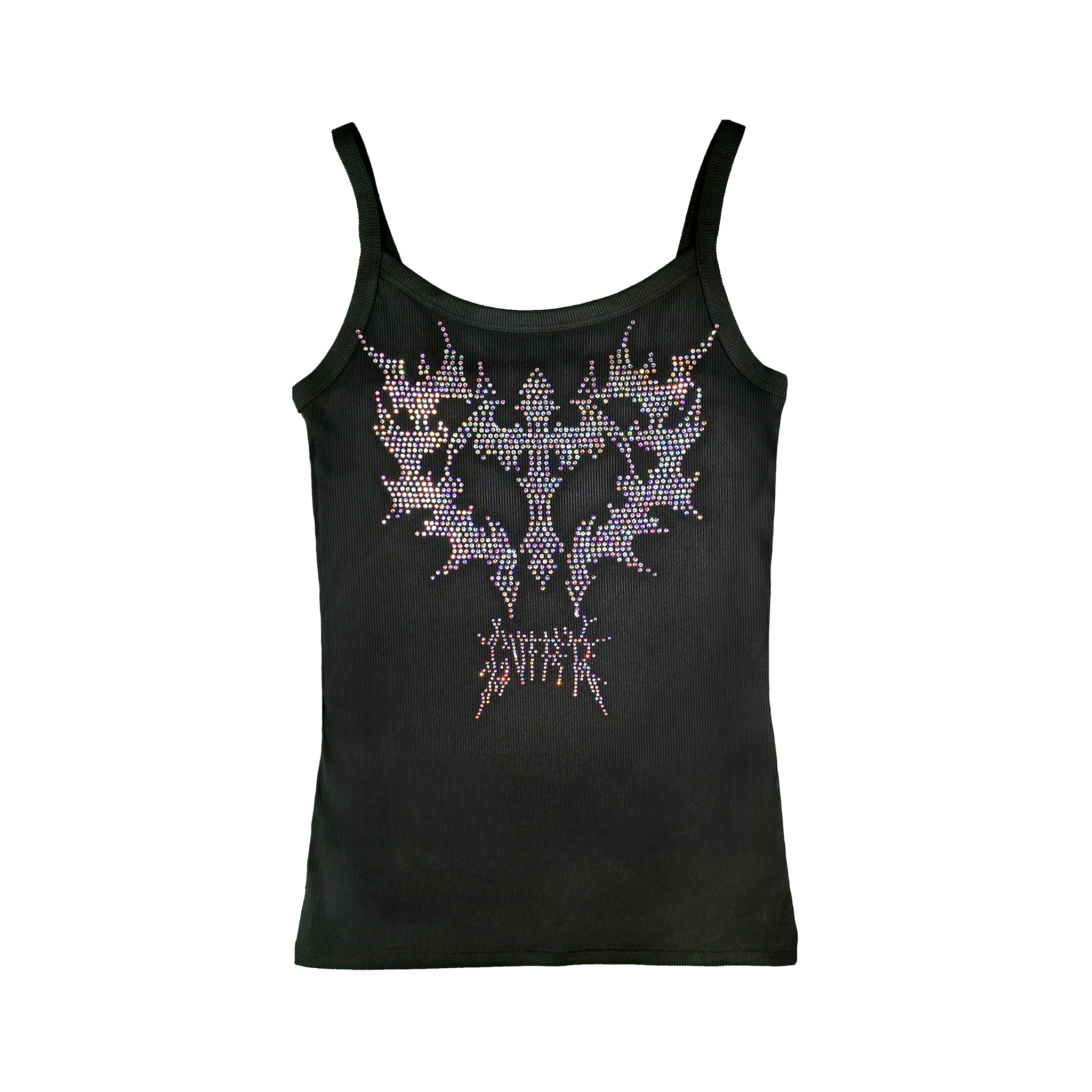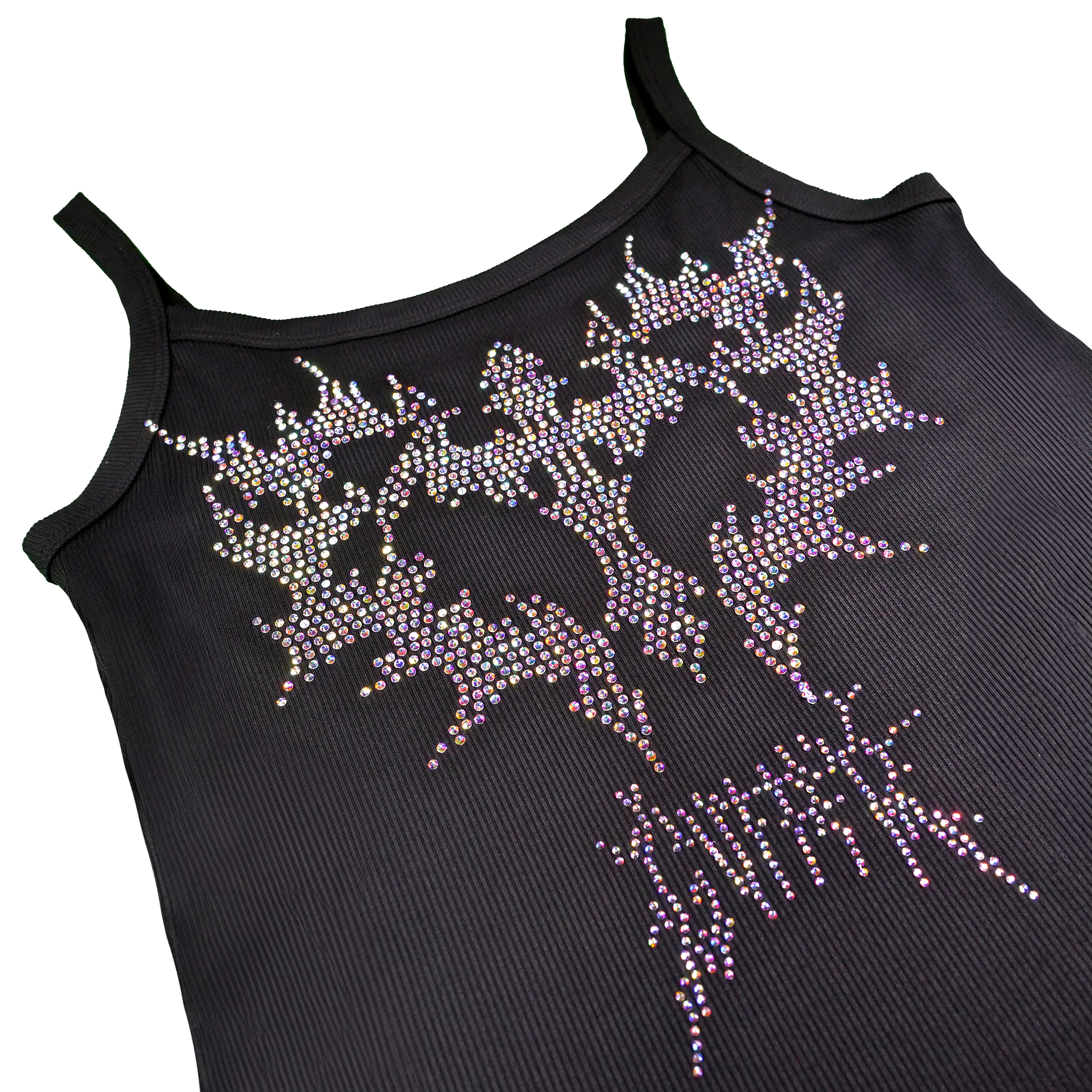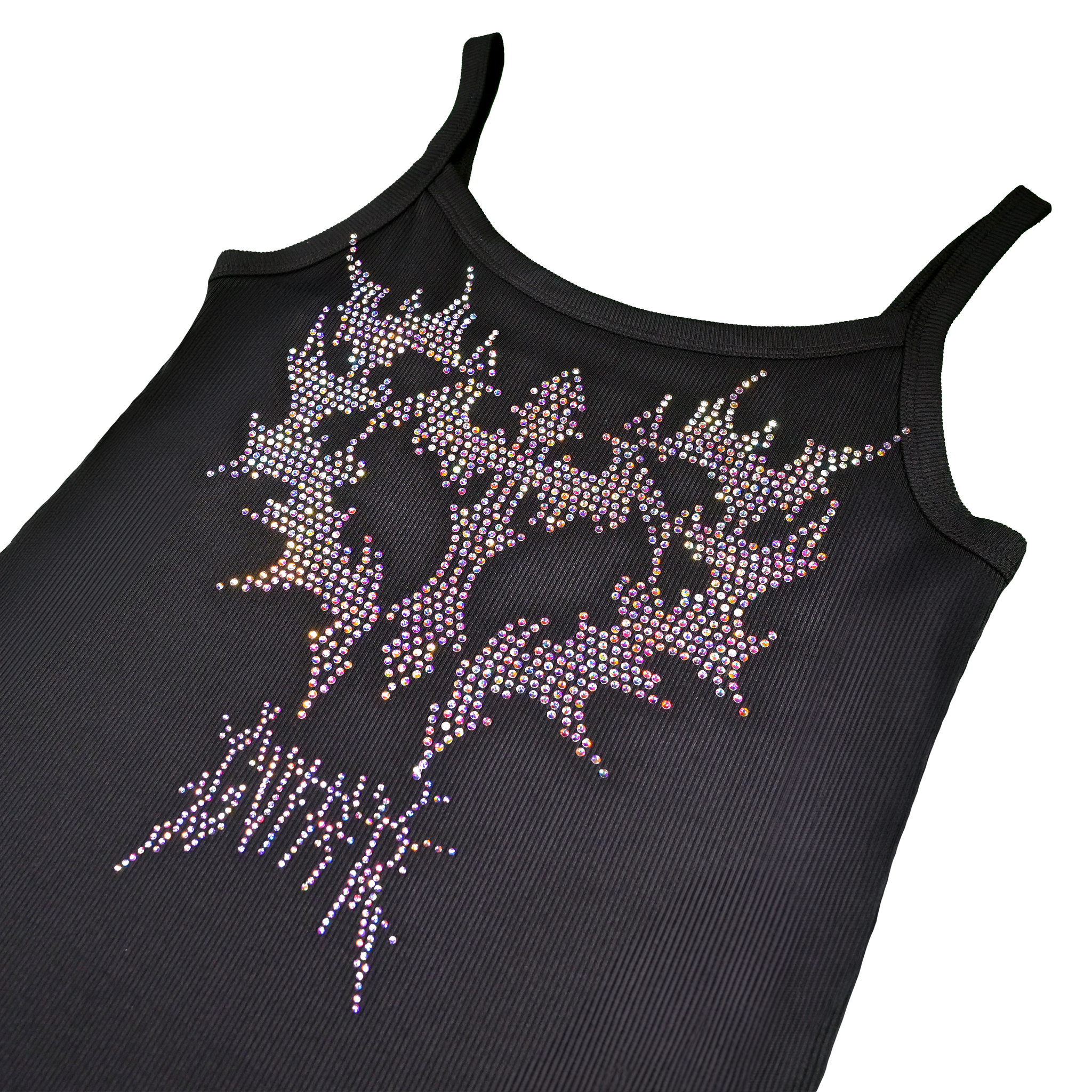 - Large Rhinestone Cross Heart Design On Center Of Tank Top